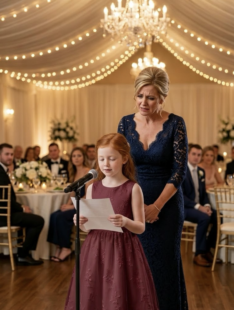 “На моей свадьбе моя свекровь объявила: «Он заслуживает кого-то настоящего, а не мать-одиночку с багажом.» В зале повисла тишина. Прежде чем я успела отреагировать, моя восьмилетняя дочь Лили встала и сказала: «Мой новый папа сказал мне прочитать это, если кто-то будет злым с моей мамой», затем она открыла конверт, который он ей дал.
